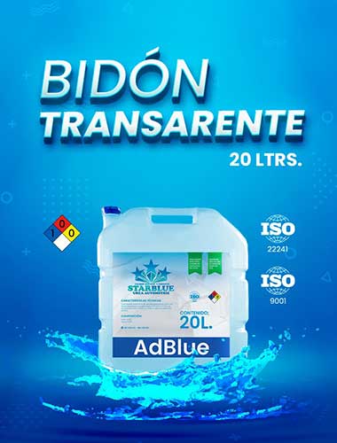 AdBlue es un líquido incoloro altamente purificado que contiene agua purificada y urea (32,5%). Se emplea en motores diésel con tecnología SCR, la cual reduce emisiones perjudiciales (NOx).